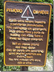 A placa ao lado alertava: “Trilha sobre terrenos instáveis com encostas íngremes. Apenas para caminhantes experientes, bom preparo físico e botas de trekking. Com neve, chuvas ou vento os riscos aumentam